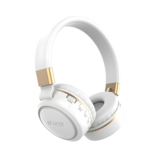 Unix Elite 9 Wireless Bluetooth Headphones with 40mm Drivers | 12-Hour Playback | Soft Earpads, TF Card Support, Foldable Design | Over-Ear Headphones for Music | Travel, Gym, Game & Calls - White